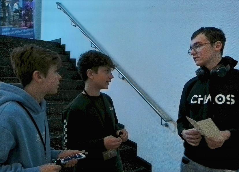 Gemeinsam mit den Gruppen, mit denen wir am vorherigen Tag beim Medienprojekt in der Gesamtschule Hardt waren, tauchten wir ein in eine Welt voller Klänge und Kreativität. Doch dieses Mal stand nicht nur das Medienprojekt mit den verschiedenen Schülerzeitungen im Fokus, sondern auch die Musik selbst. Wir, die Schüler*innen des Gymnasiums an der Gartenstraße, der Gesamtschule Hardt und der Geschwister Scholl Realschule, hatten die Gelegenheit, Fotos von dem Geschehen zu machen, Interviews mit den Solisten zu führen und den talentierten Musikern der Musikschule Mönchengladbach bei ihren Proben zuzuhören. Es war faszinierend zu sehen, mit welcher Hingabe und Leidenschaft sie ihre Instrumente beherrschten und ihre Musik zum Leben erweckten! Außerdem gab es in den Pausen einen Austausch mit Herrn Fuentes, dem Leiter und Dirigenten der offenen Probe. Zwischendurch nahm er sich Zeit, um uns etwas über die Musik, ihre Herkunft und die Stücke, die gespielt wurden, zu erzählen. Seine Leidenschaft für die Musik war wirklich ansteckend und verlieh der Probe eine ganz besondere Atmosphäre.
